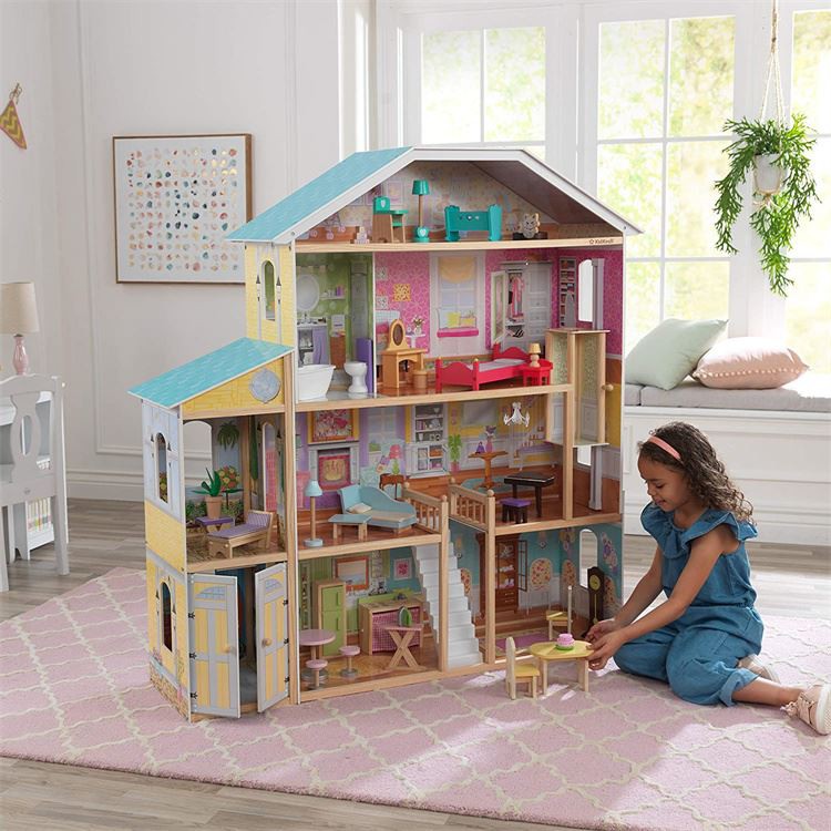 ساعتها را با خانه عروسکهای عمارت مجلل سپری کنید. این عمارت 136 سانتی متری دارای 4 طبقه، 8 اتاق، یک راه پله بزرگ و یک آسانسور برای حمل و نقل عروسک های کودک شما می باشد. این خانه عروسک بزرگ شامل یک بسته لوازم جانبی 34-تکه مبلمان است که در آن بچهها ساعتها از کاوش در عمارت مجستیک با عروسکهای مد 12-اینچی (30- سانتیمتری) خود لذت خواهند برد.